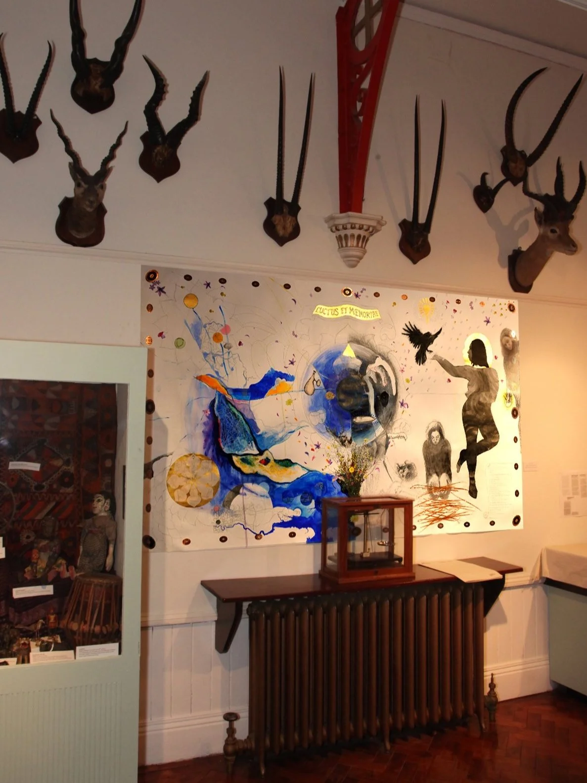 Losing Civilisation Archive, Bexhill Museum, installation view, 2010: Mappa Luctus et Memoriae (Memory and Mourning Map), mixed media on paper; Wish Psychosis, cabinet with found objects